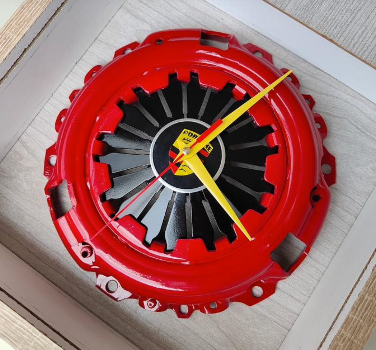 مصنوعة من قرص كلتش (ديسك الدبرياج) حقيقي، بتصميم قوي وملفت يضيف لمسة سبيد وأدرينالين لجدار غرفتك أو مكتبك