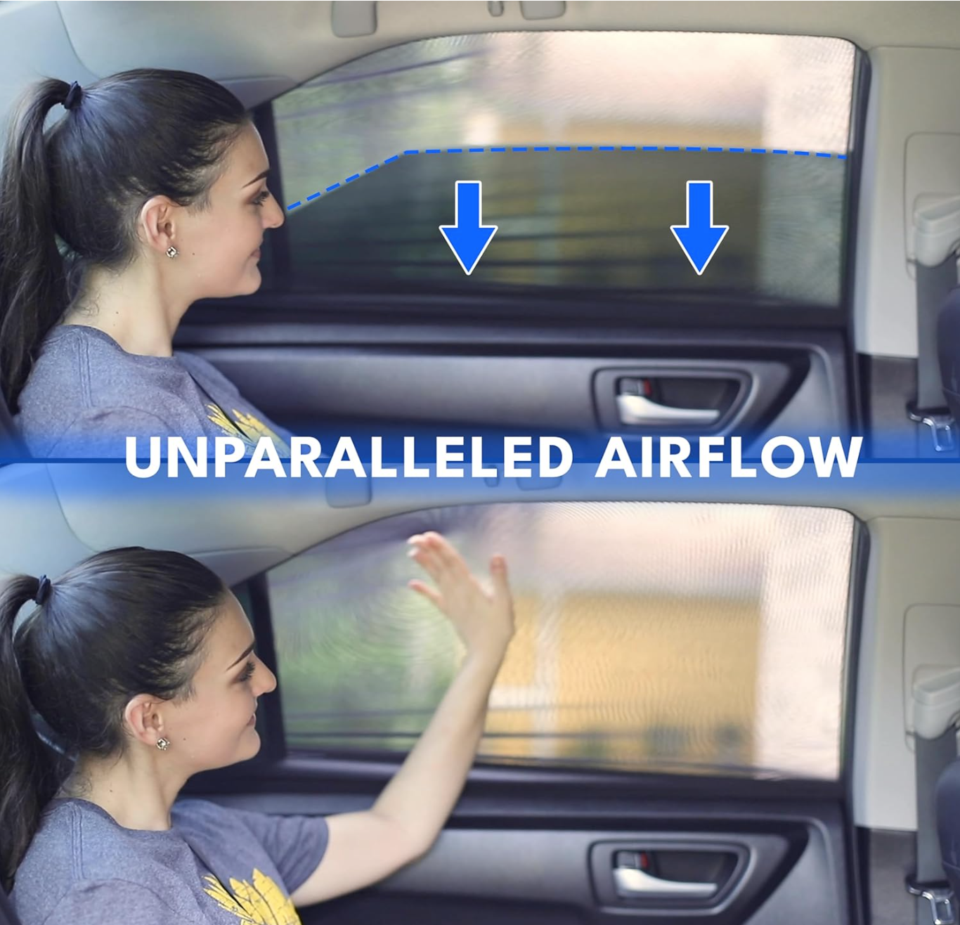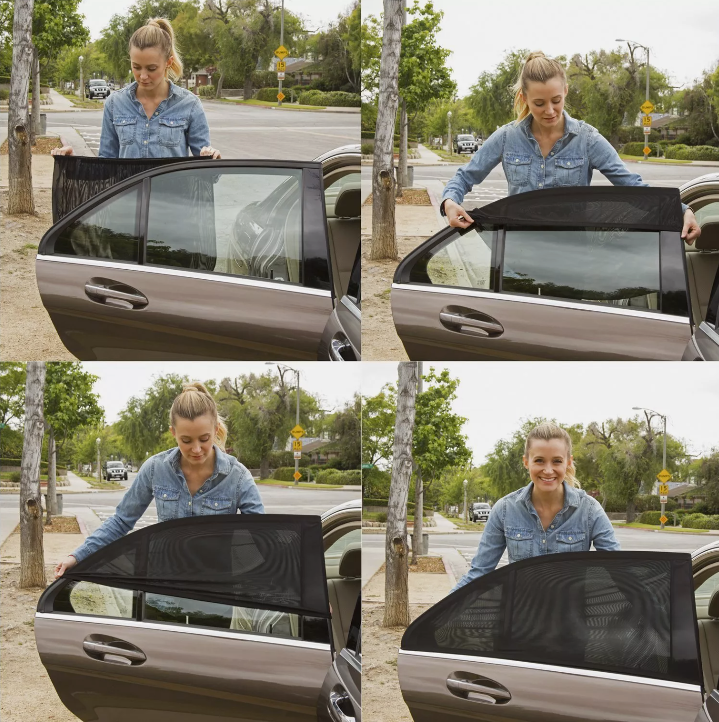 شبكة ناموس لنوافذ السيارة – واقي شمس أوتوماتيكي للسفر والتخييم في الهواء الطلق – قابلة للتعديل – قطعتان