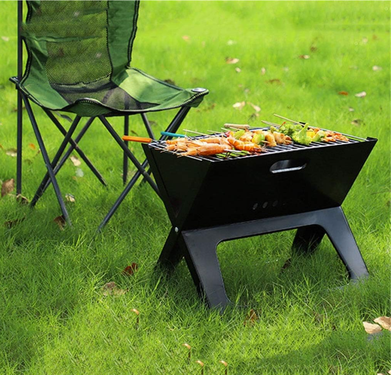 شواية باربكيو محمولة قابلة للطي - شواية فحم للشواء في الهواء الطلق - للرحلات والنزهات