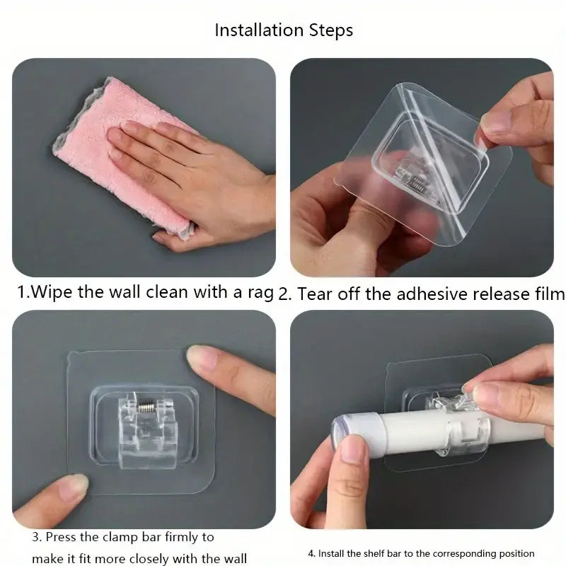 "علاقات ذاتية اللصق بدون مسامير لتعليق أعمدة الستائر: مشبك خطاف لتعليق أعمدة ستائر الحمام، حامل ثابت منزلي لتعليق الستائر وأعمدة الستائر.