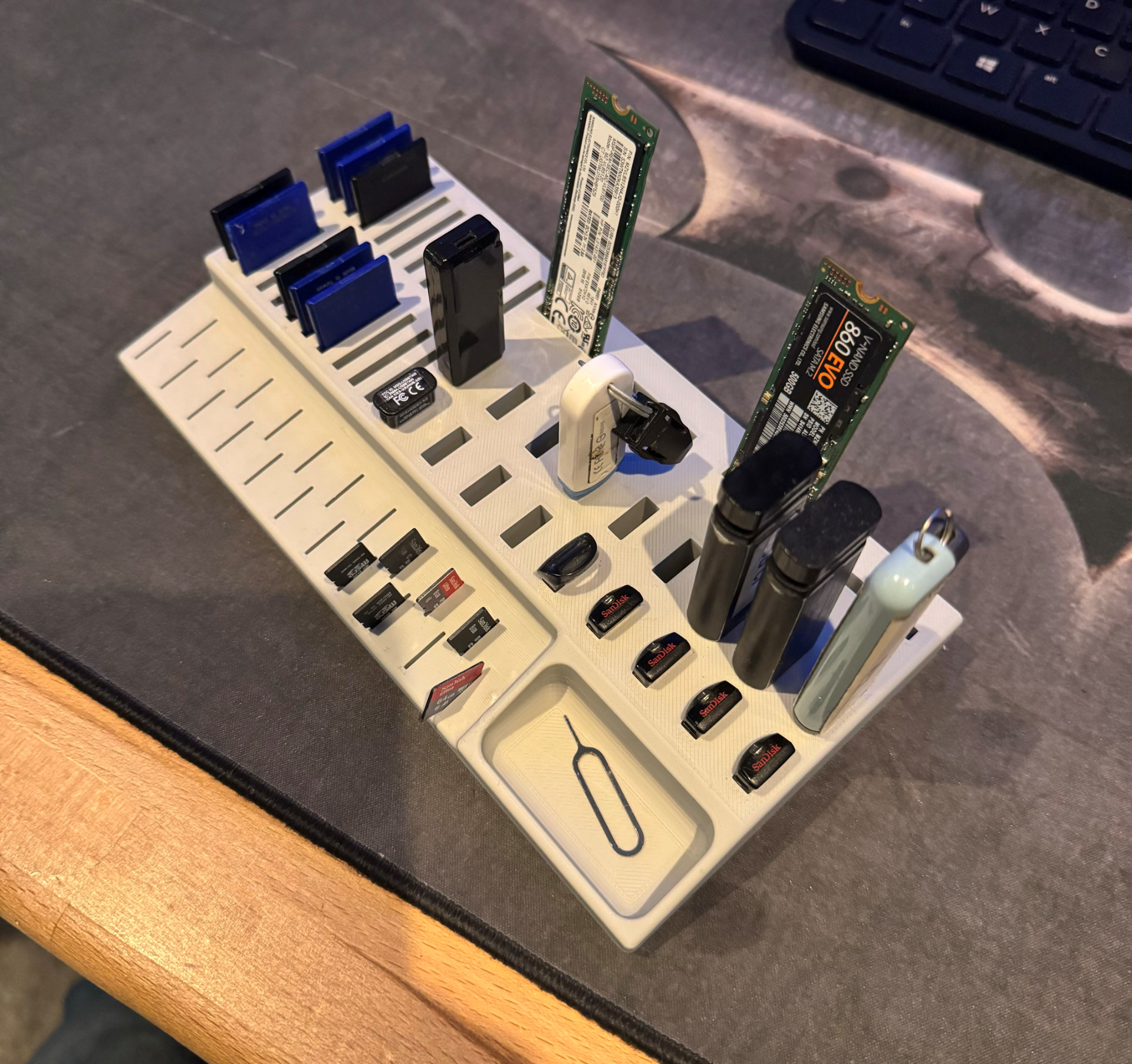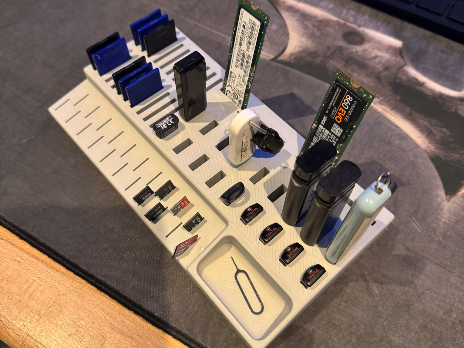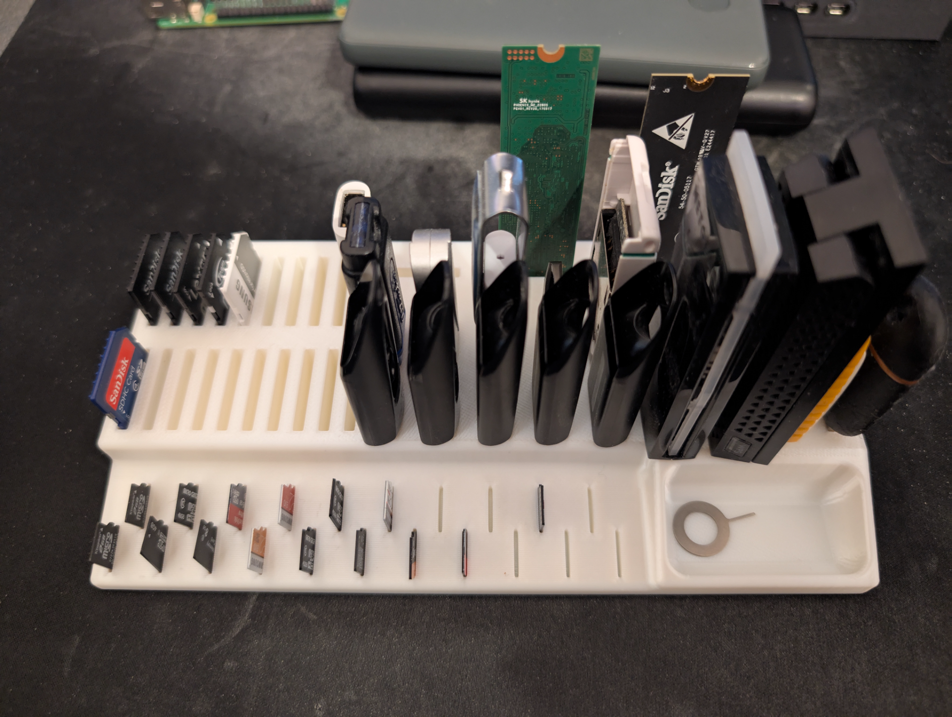 a large support for many USB keys, SD and Micro SD cards and M2 SSDs.